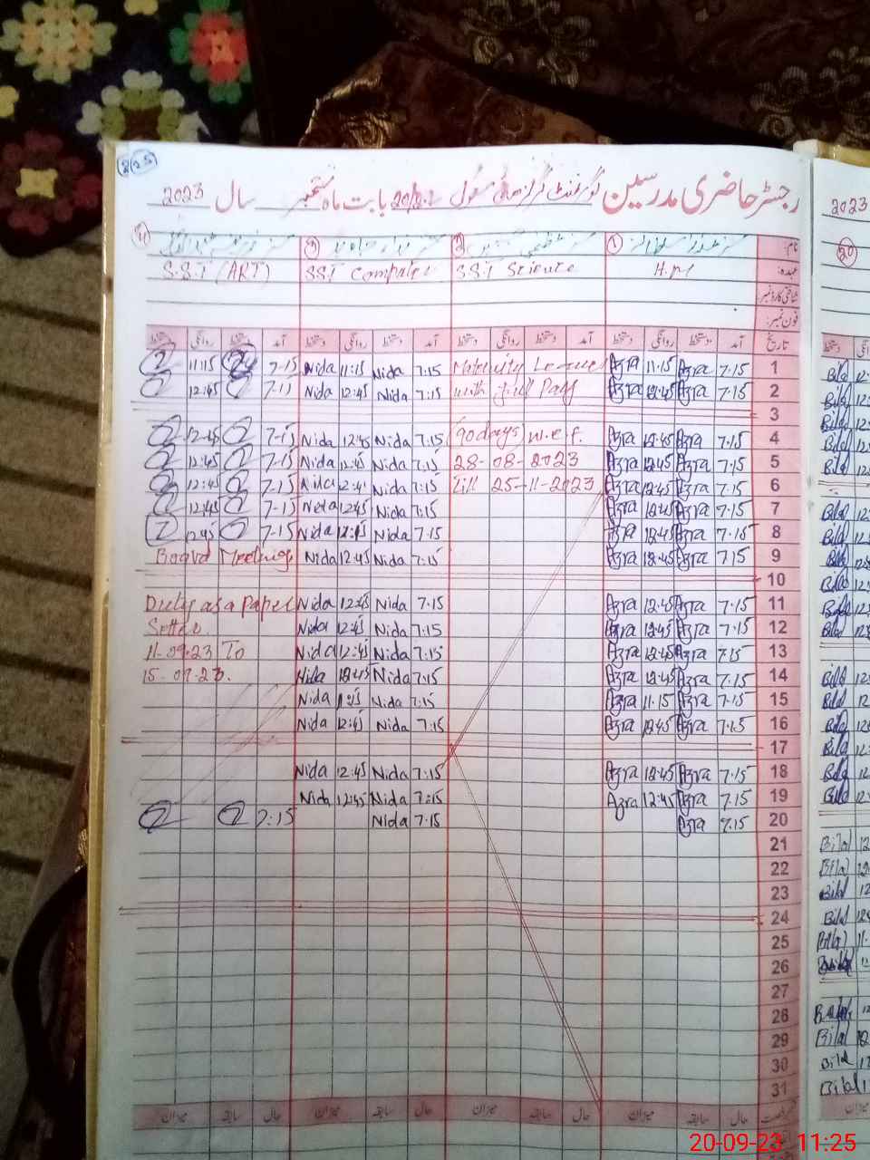 | Name: Uz**** Ja**** Designation: (School Headmaster's/Headmistress's) SST SCIENCE Phone/Cell Number: 03**** |