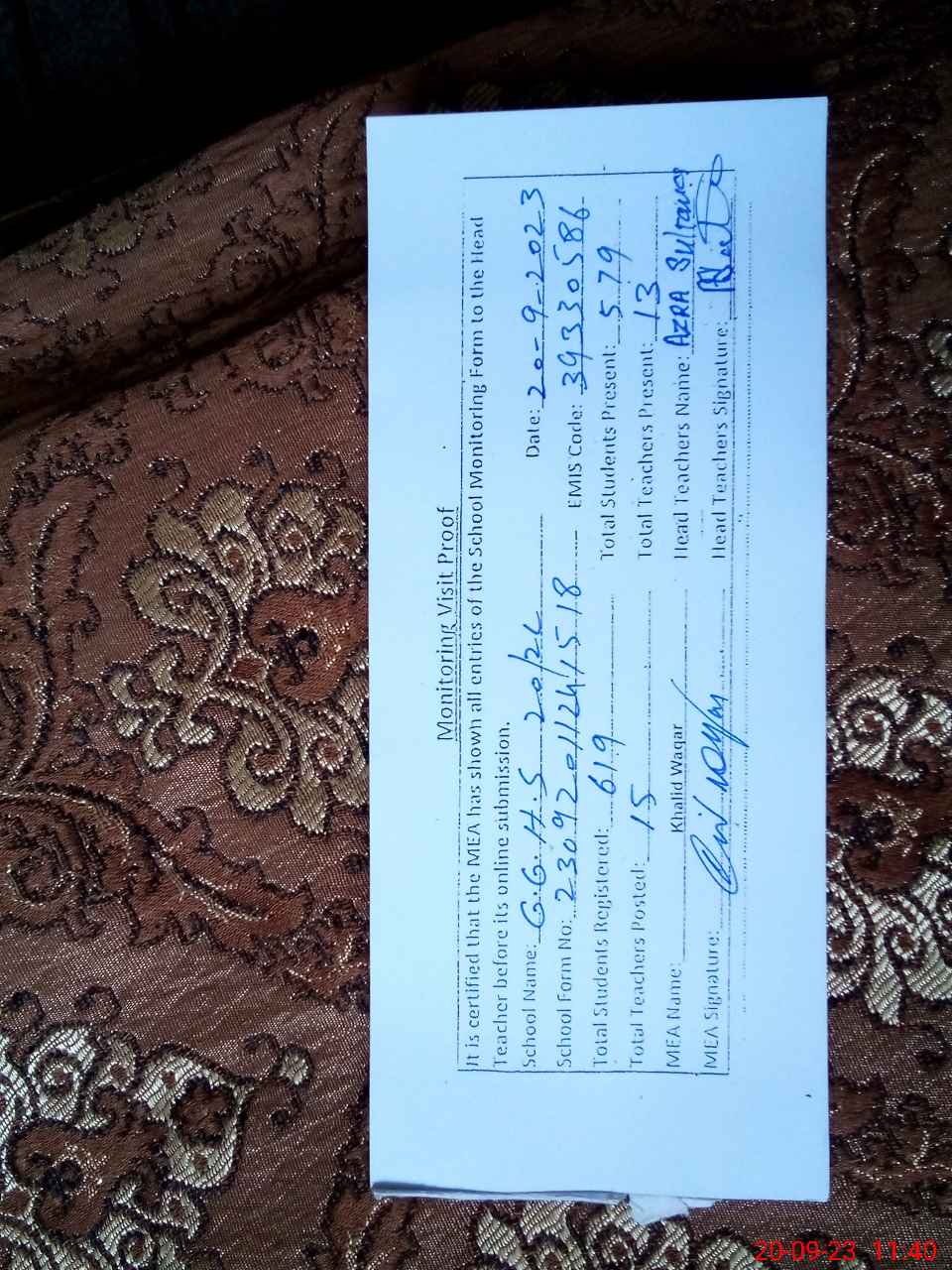 | EMIS Code: 39330586 | Name of School: GGHS CHAK 20/2-L | |||