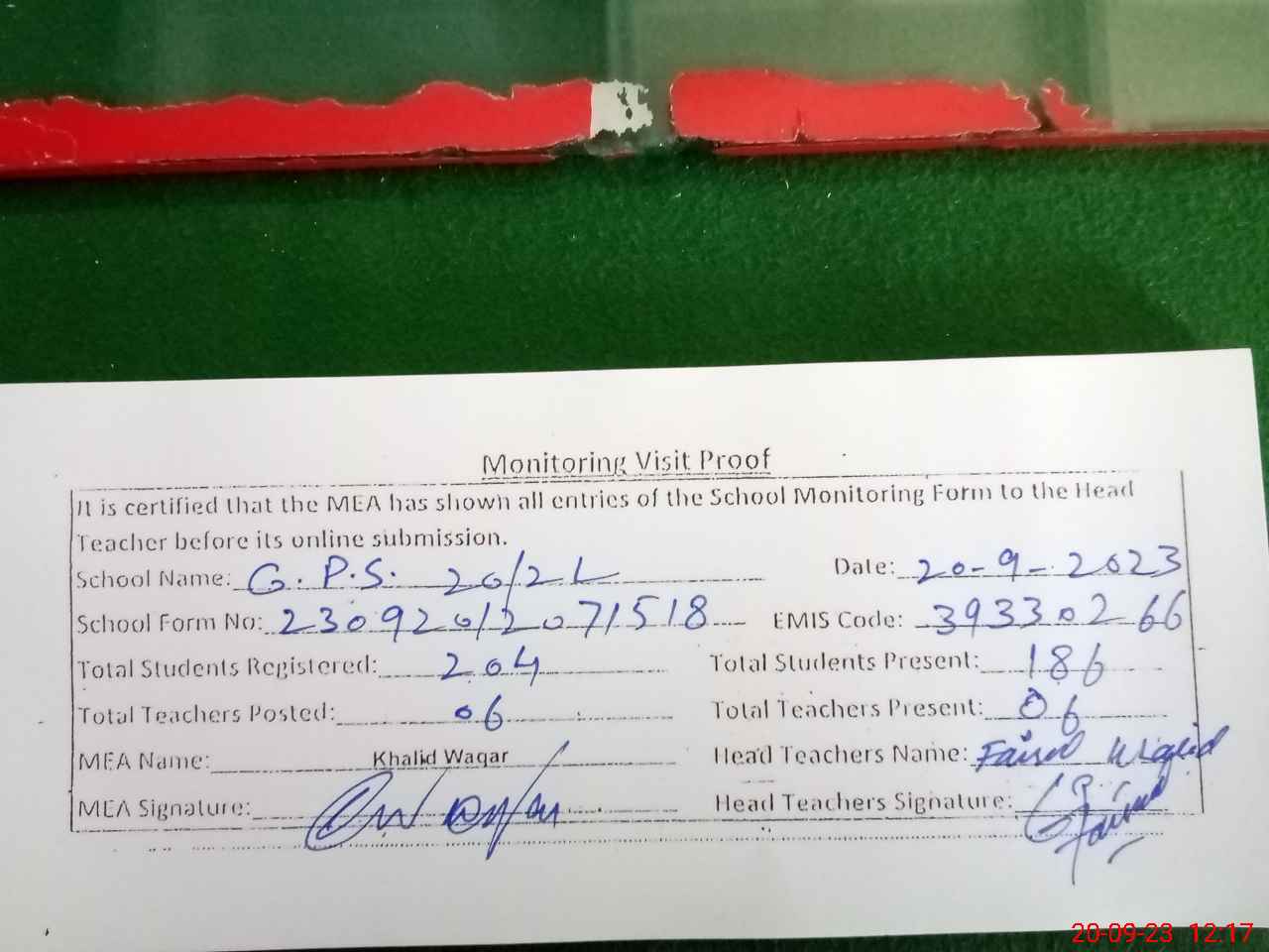 | EMIS Code: 39330266 | Name of School: GPS CHAK 20/2.L | |||