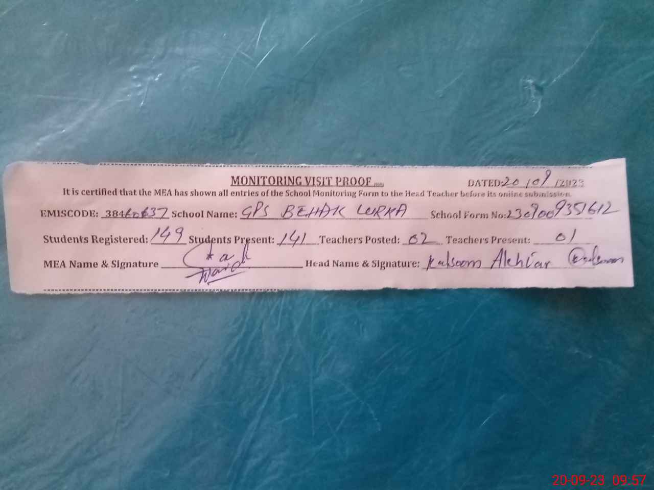 | EMIS Code: 38460637 | Name of School: GGPS BEHAK LURKA | |||