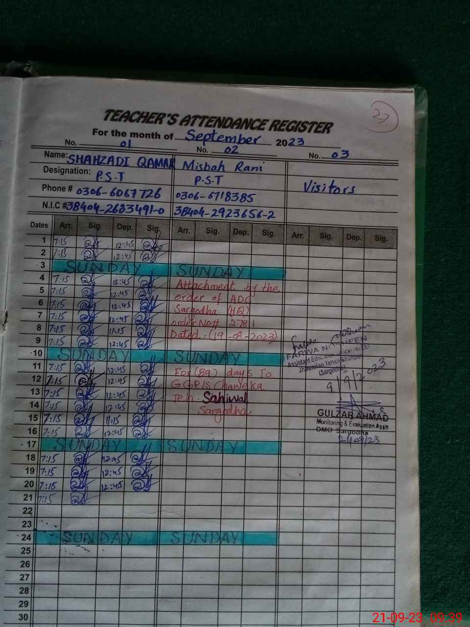 | Name: SH**** QA**** Designation: (School Headmaster's/Headmistress's) PST Phone/Cell Number: 03**** |