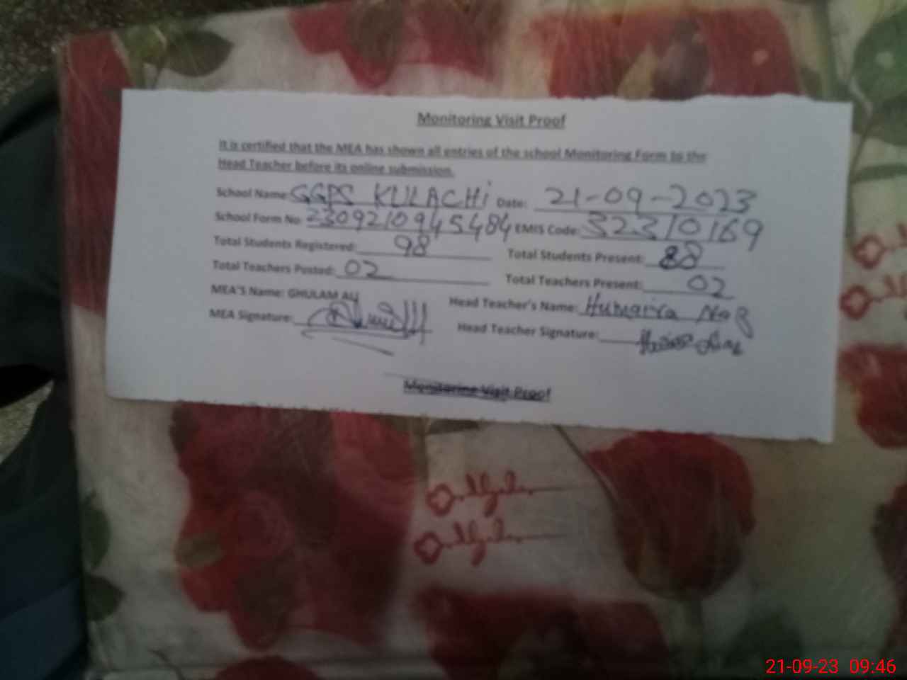 | EMIS Code: 32310169 | Name of School: GGPS KOLACHI | |||