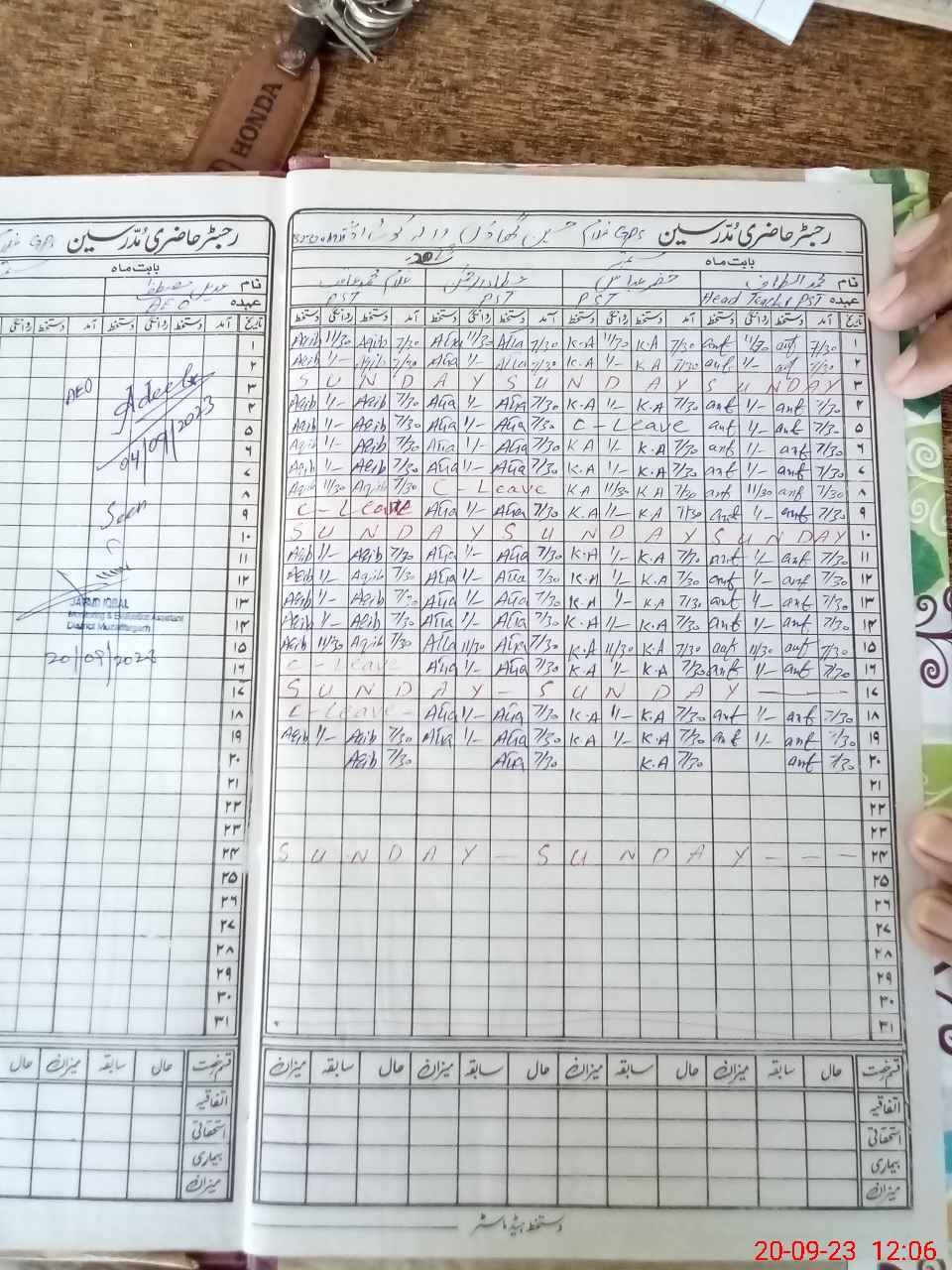 | CNIC | Full Name | Designation | R/C | Absence During Last Calender Month |