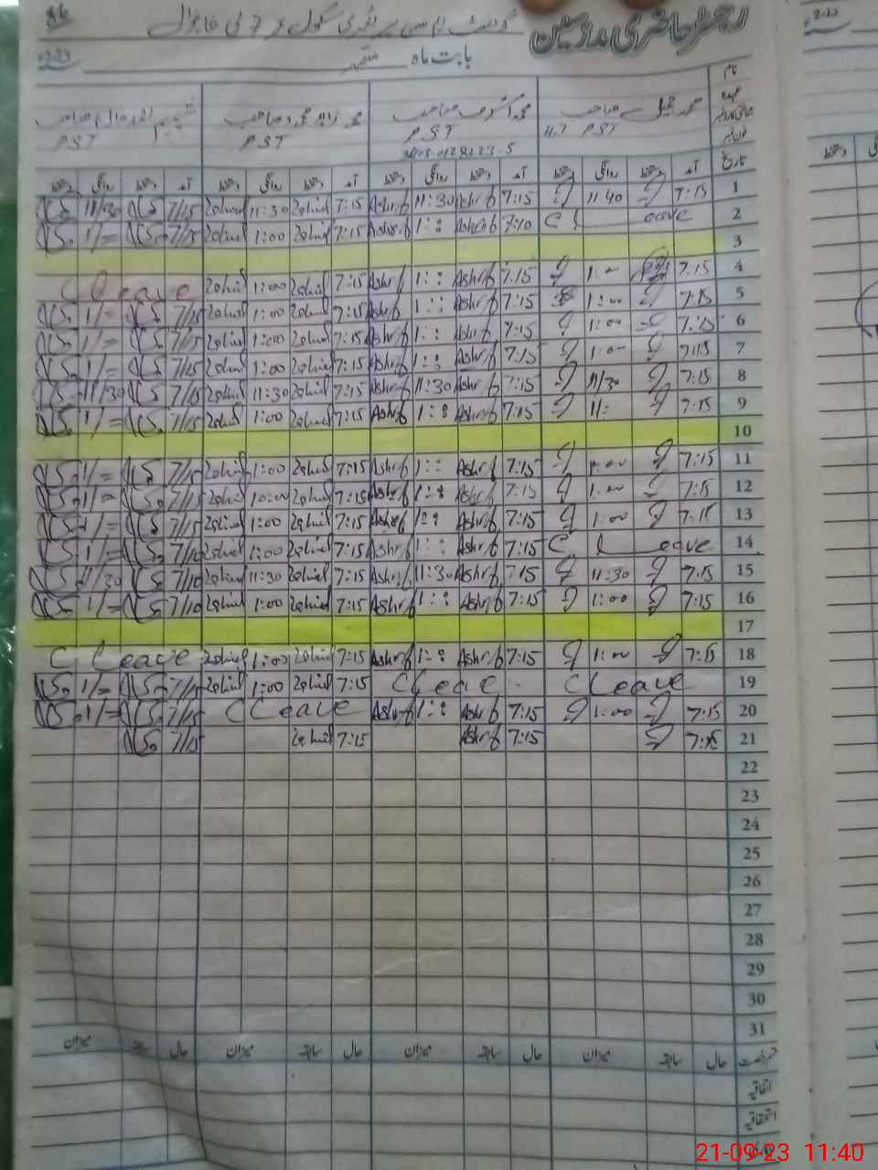 | Name: Mu**** Ja**** Designation: (School Headmaster's/Headmistress's) PST Phone/Cell Number: 03**** |