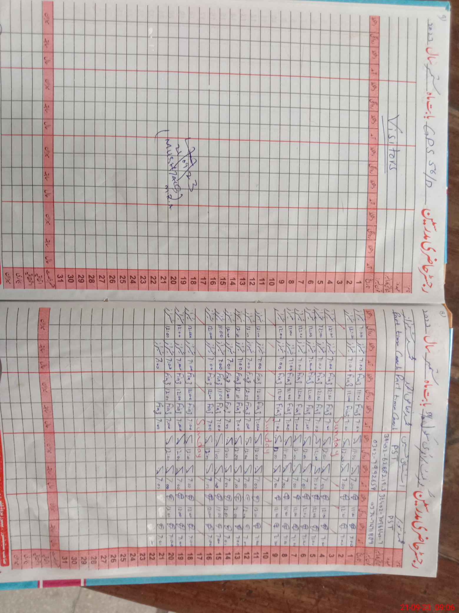 | Name: MTa**** Designation: (School Headmaster's/Headmistress's) PST Phone/Cell Number: 03**** |