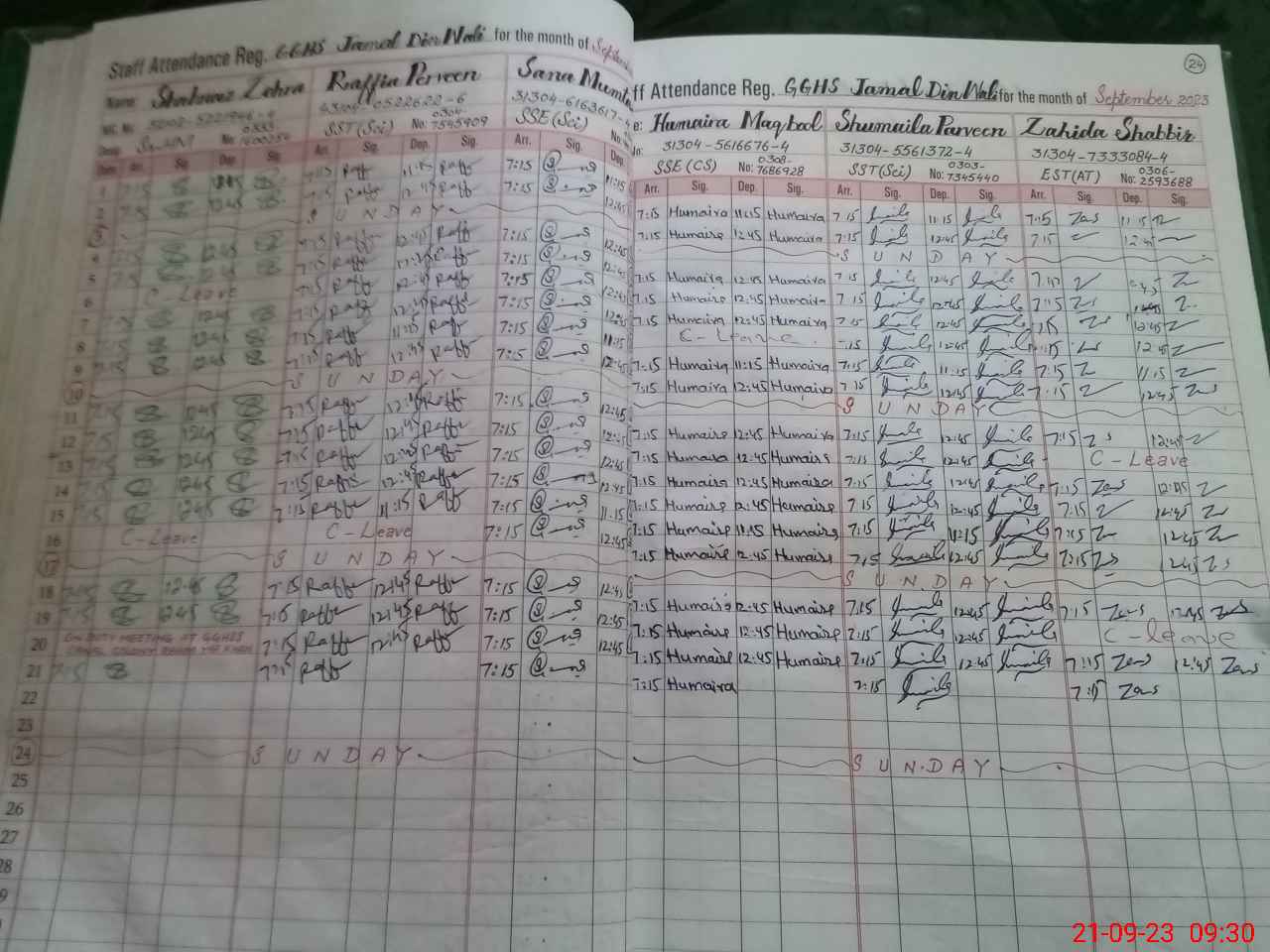 | CNIC | Full Name | Designation | R/C | Absence During Last Calender Month |