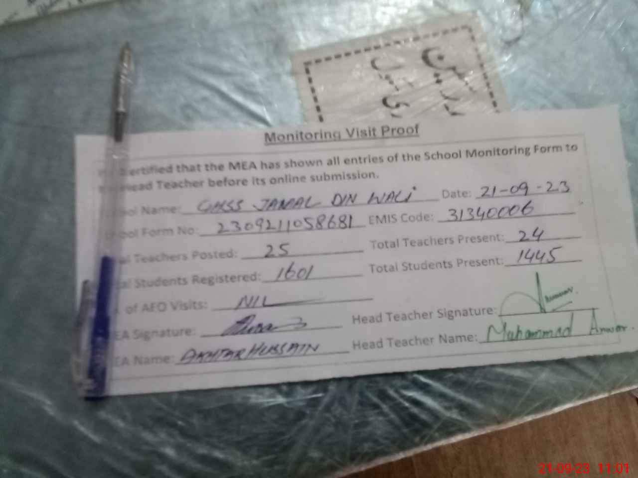 | EMIS Code: 31340006 | Name of School: GHSS JAMAL DIN WALI | |||