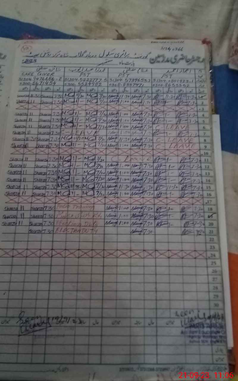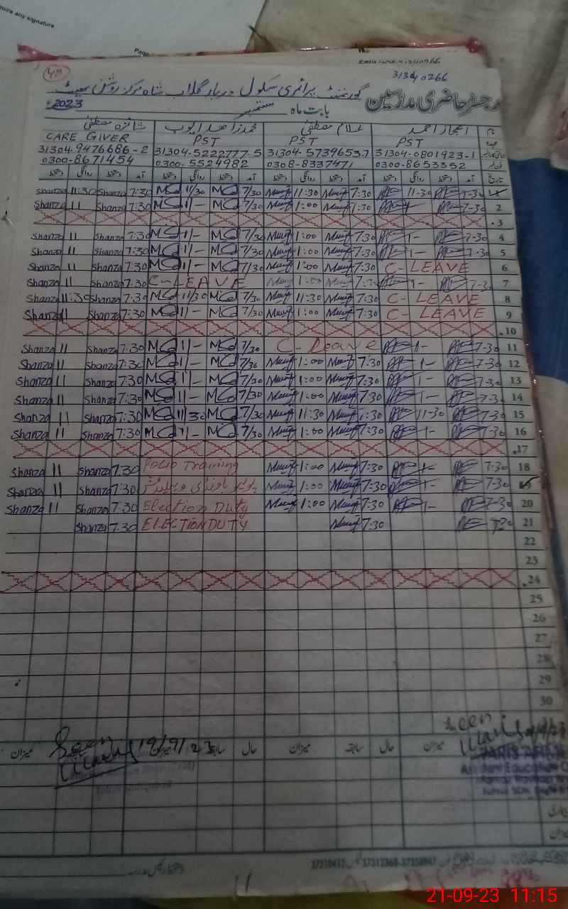| Name: Mu**** Za**** Ay**** Designation: (School Headmaster's/Headmistress's) PST Phone/Cell Number: 03**** |