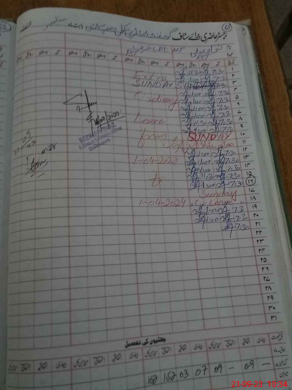 | Leave | Duty | Absent | Maternity | Medical | Ex- Pak |