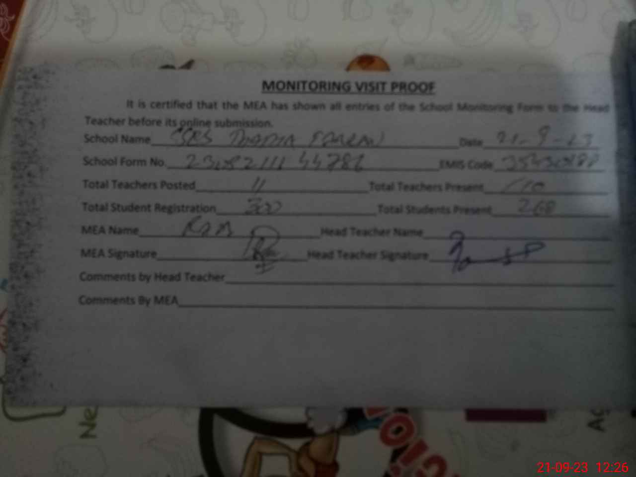| Certified that this School was Inspected by the Undersigned MEA/DMO Today and the Information Stated Above is as Per Record. | |||||