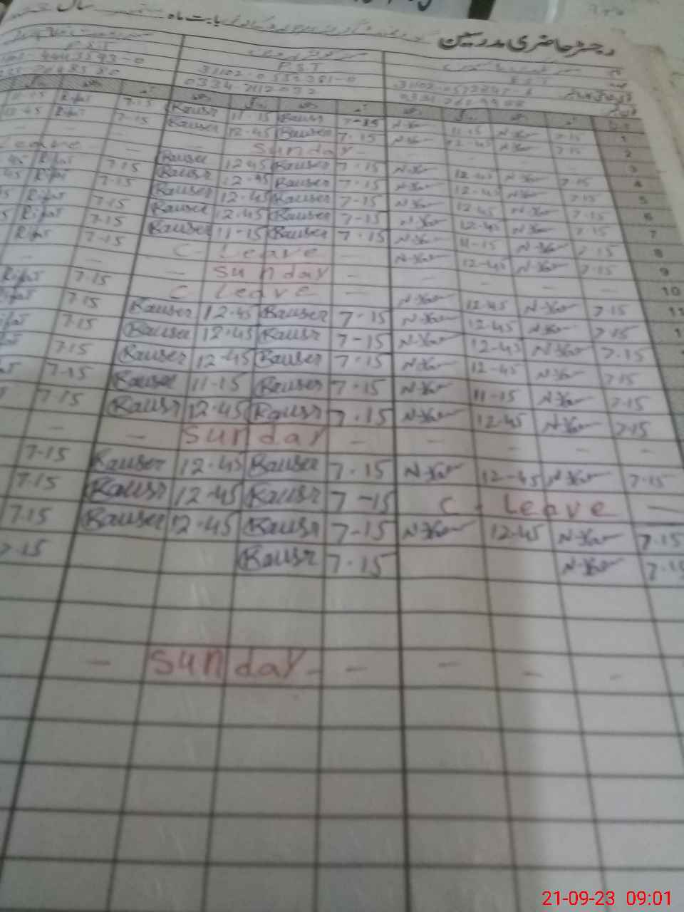 | CNIC | Full Name | Designation | R/C | Absence During Last Calender Month |