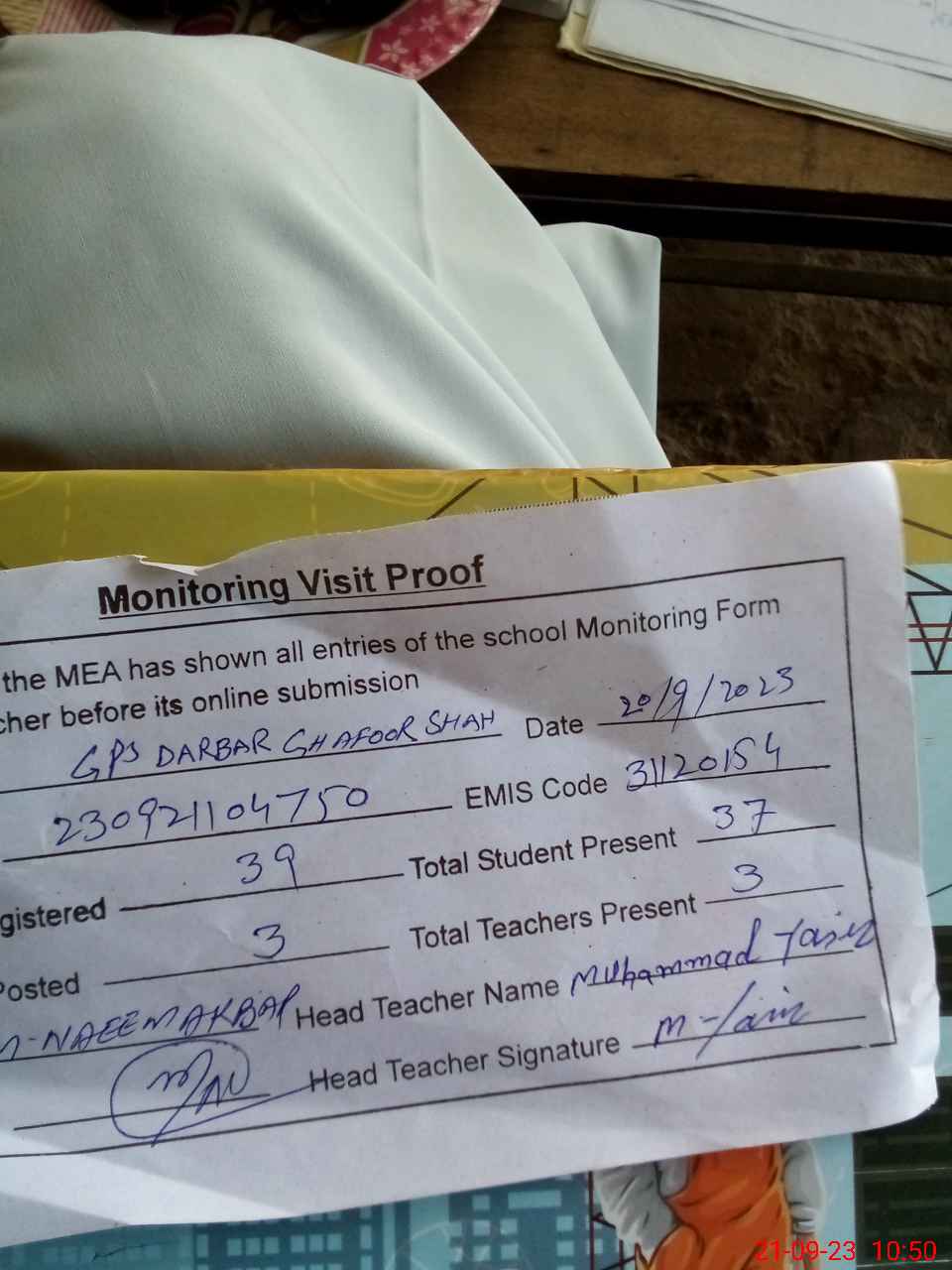 | EMIS Code: 31120154 | Name of School: GPS DARBAR GHAFOOR SHAH | |||