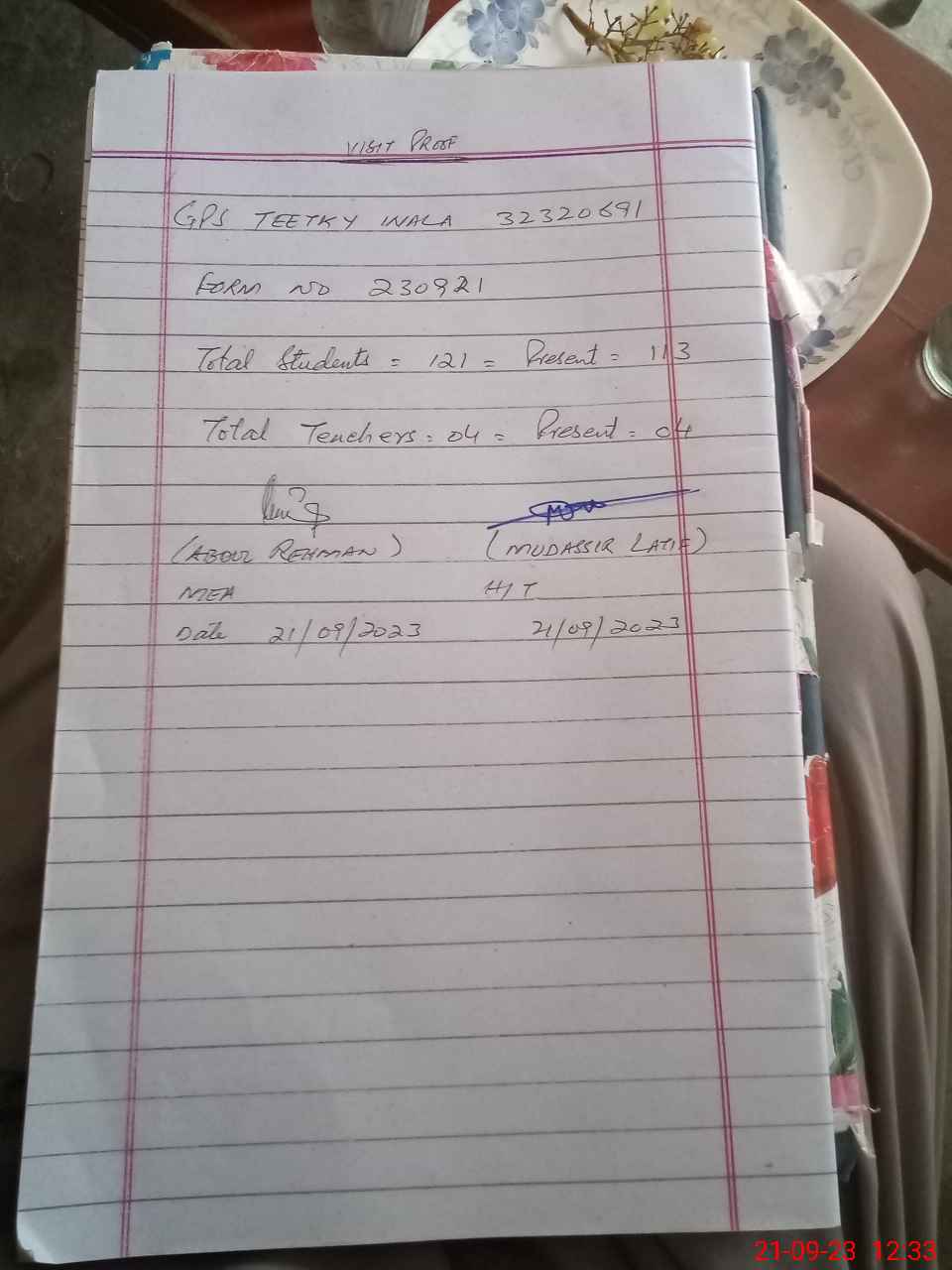 | EMIS Code: 32320691 | Name of School: GPS TEETKY WALA | |||