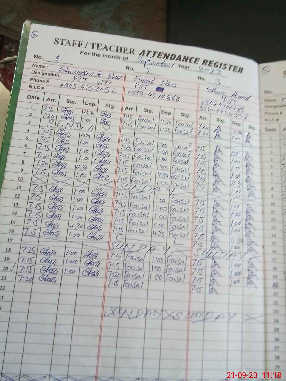 | Name: Gh**** Al**** Kh**** Designation: (School Headmaster's/Headmistress's) PST Phone/Cell Number: 03**** |