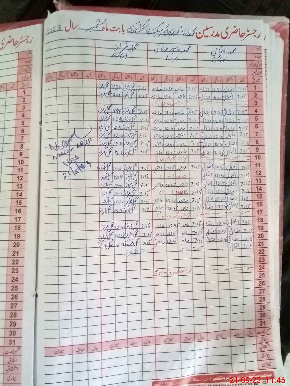| Total no. of Classrooms: 13 No. of Classrooms Used for Teaching: 13 No. of Classrooms Storing Old Furniture, FTBs, etc: 0Comments if Any: Principal Mrs Atteeqa Jalal marked as absent as no approved leave shown Teacher Mrs Iqbal Fatima marked as absent as no approved leave shown |