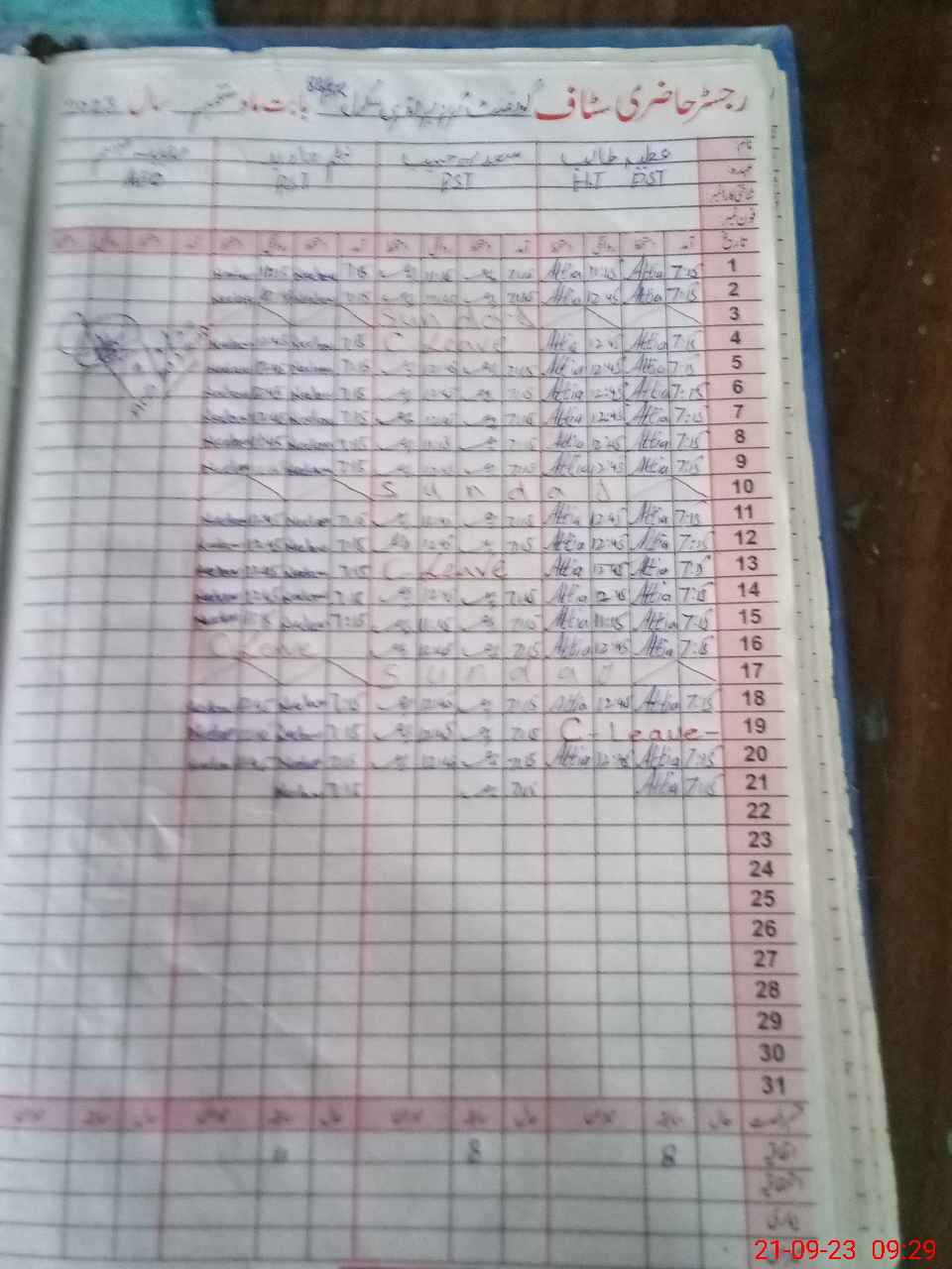| CNIC | Full Name | Designation | R/C | Absence During Last Calender Month |