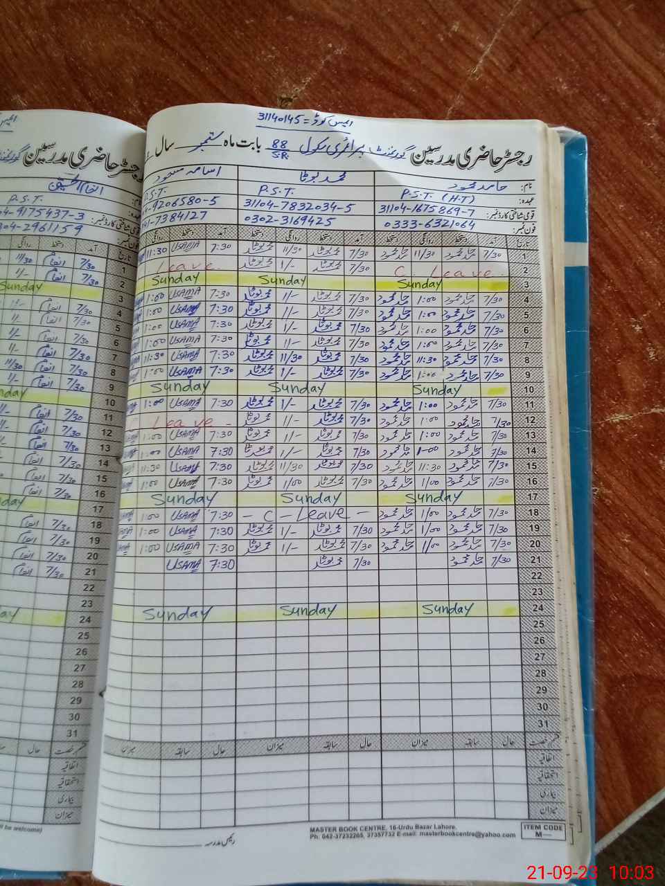 | Name: Us**** Ma**** Designation: (School Headmaster's/Headmistress's) PST Phone/Cell Number: 03**** |