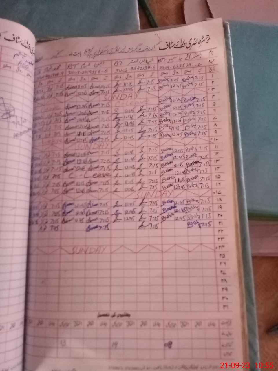 | CNIC | Full Name | Designation | R/C | Absence During Last Calender Month |