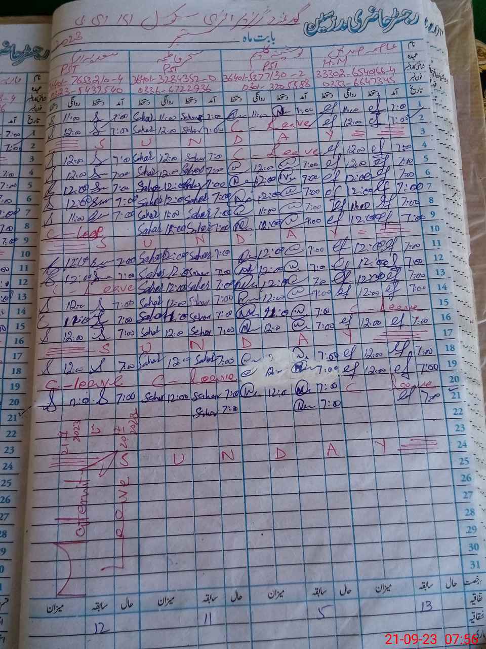 | Name: AS**** SI**** Designation: (School Headmaster's/Headmistress's) PST Phone/Cell Number: 03**** |