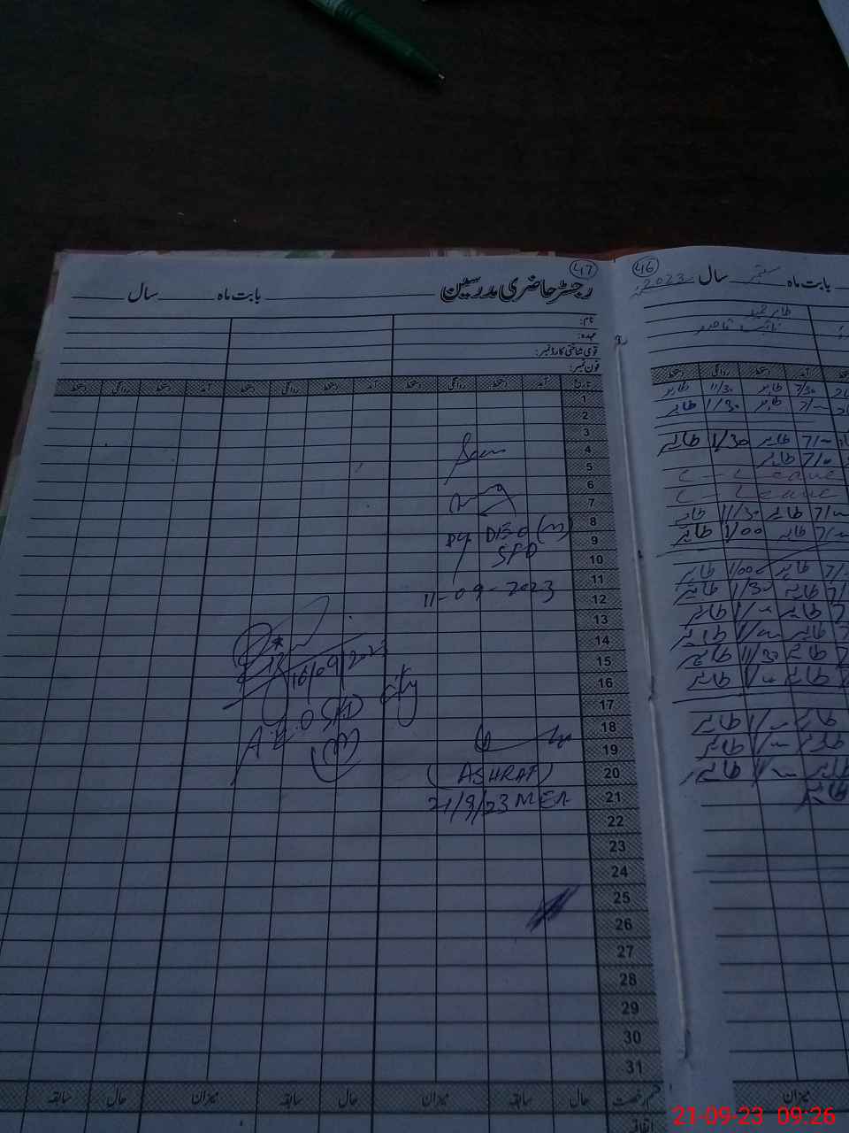 | Monitoring Date: 21-09-2023 | Start Time: 21-09-2023 09:10 AM | End Time: 21-09-2023 10:27 AM | Name of MEA: Mu**** As**** | |
