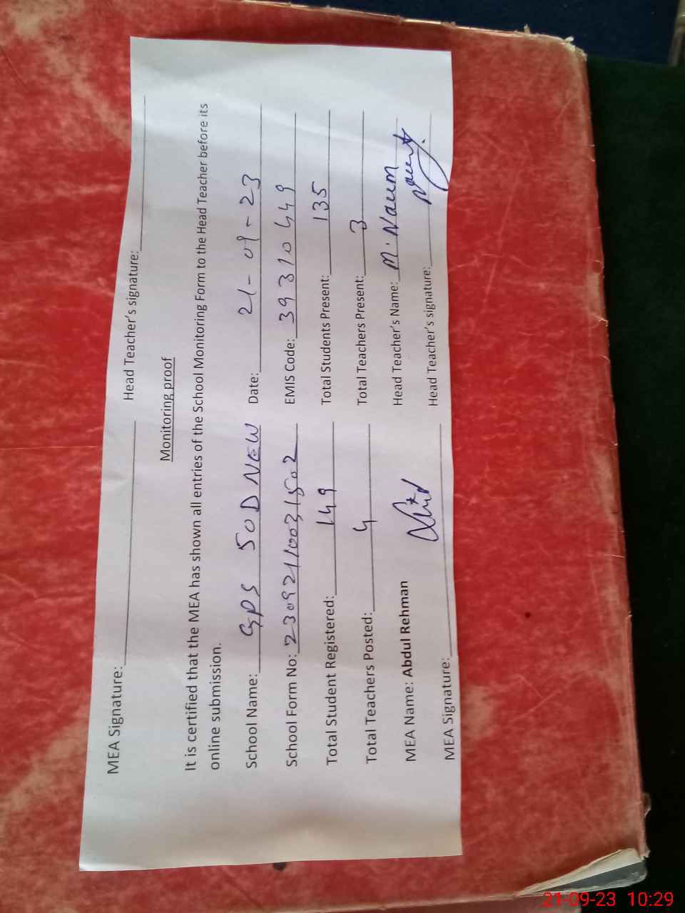 | EMIS Code: 39310449 | Name of School: GPS CHAK NO. 50-D NEW | |||