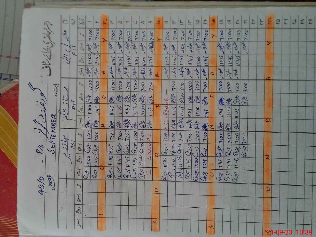 | Leave | Duty | Absent | Maternity | Medical | Ex- Pak |