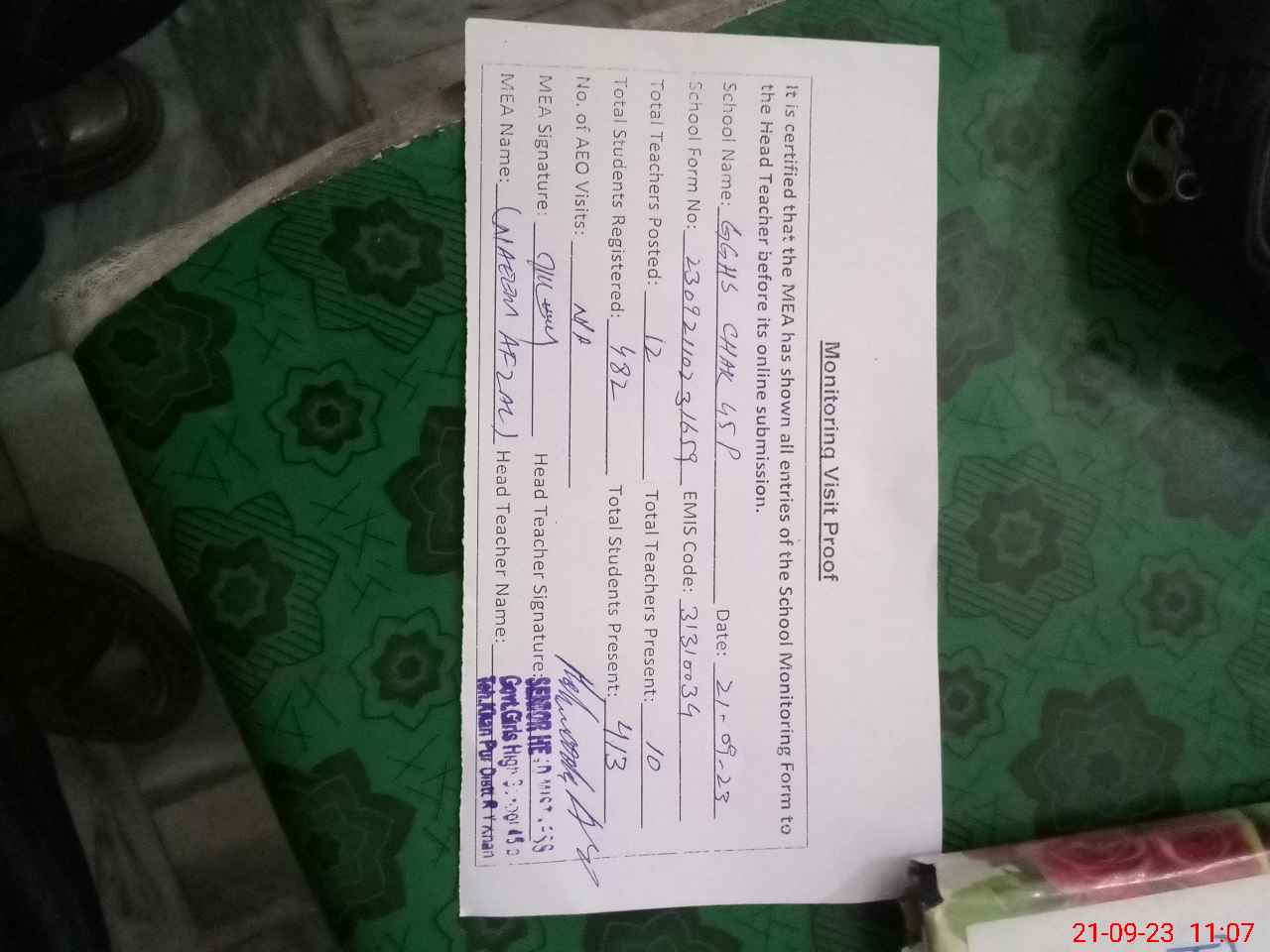 | EMIS Code: 31310034 | Name of School: GGHS CHAK NO. 45/P | |||