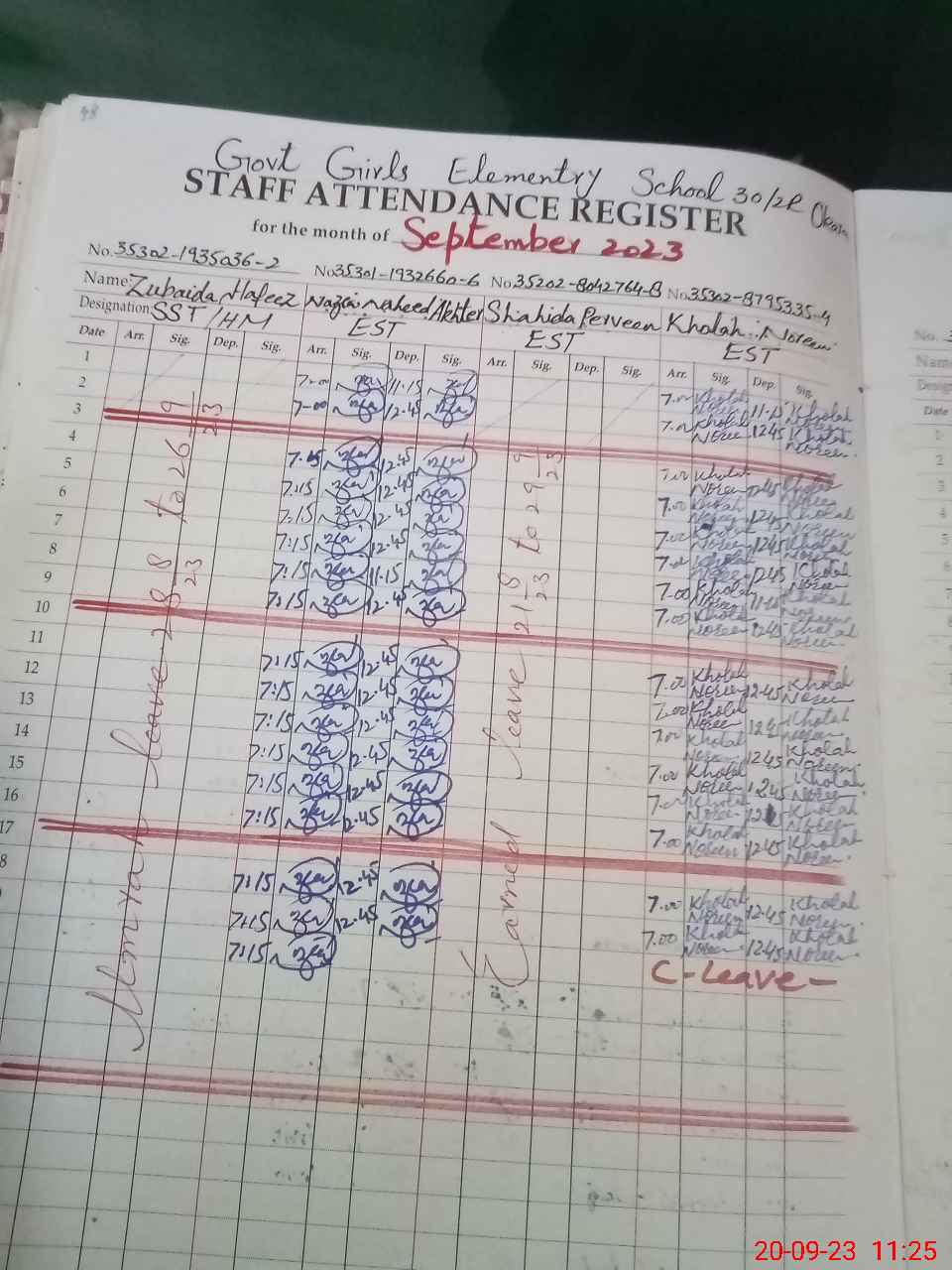 | CNIC | Full Name | Designation | R/C | Absence During Last Calender Month |