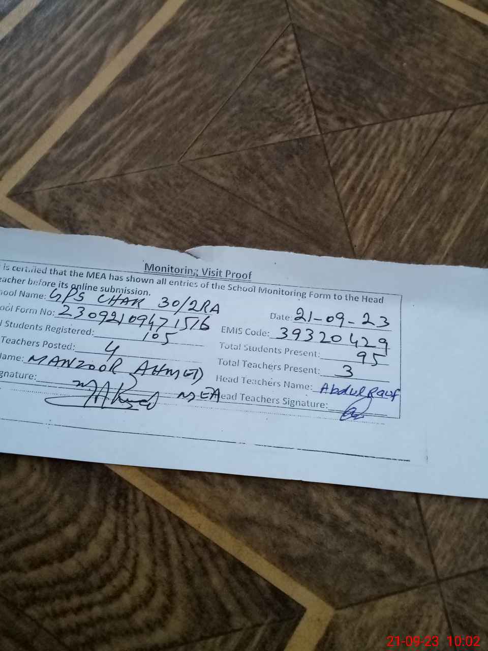 | EMIS Code: 39320429 | Name of School: GPS CHAK NO. 30/2-R | |||