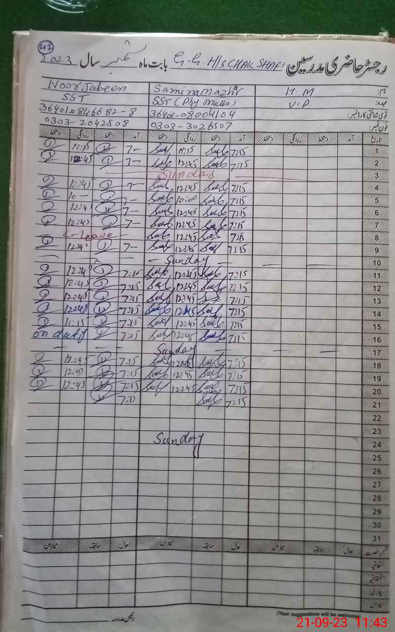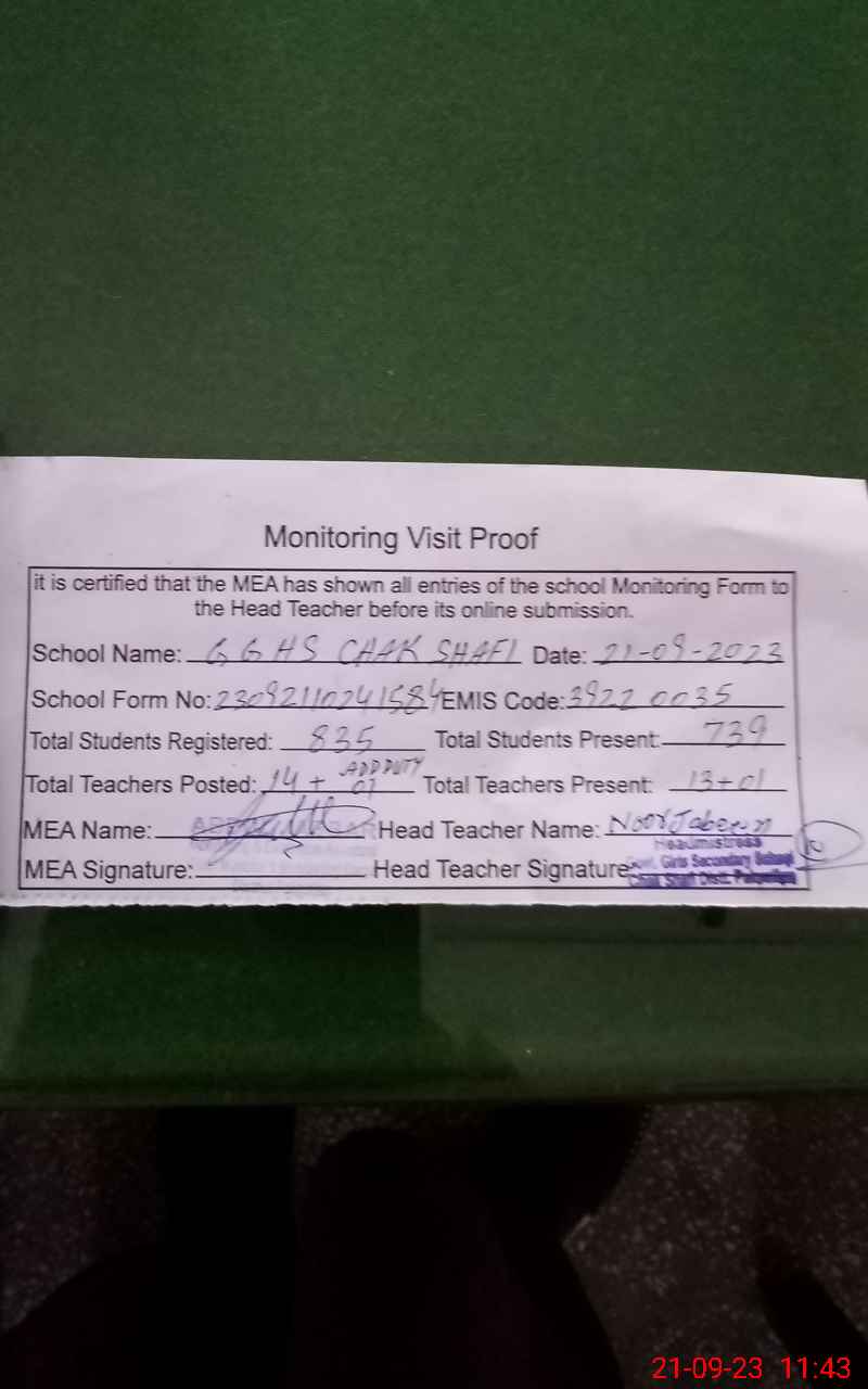 | EMIS Code: 39220035 | Name of School: GGHS CHAK SHAFI | |||