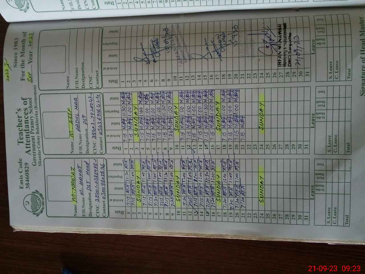 | Name: MU**** NA**** Designation: (School Headmaster's/Headmistress's) PST Phone/Cell Number: 03**** |