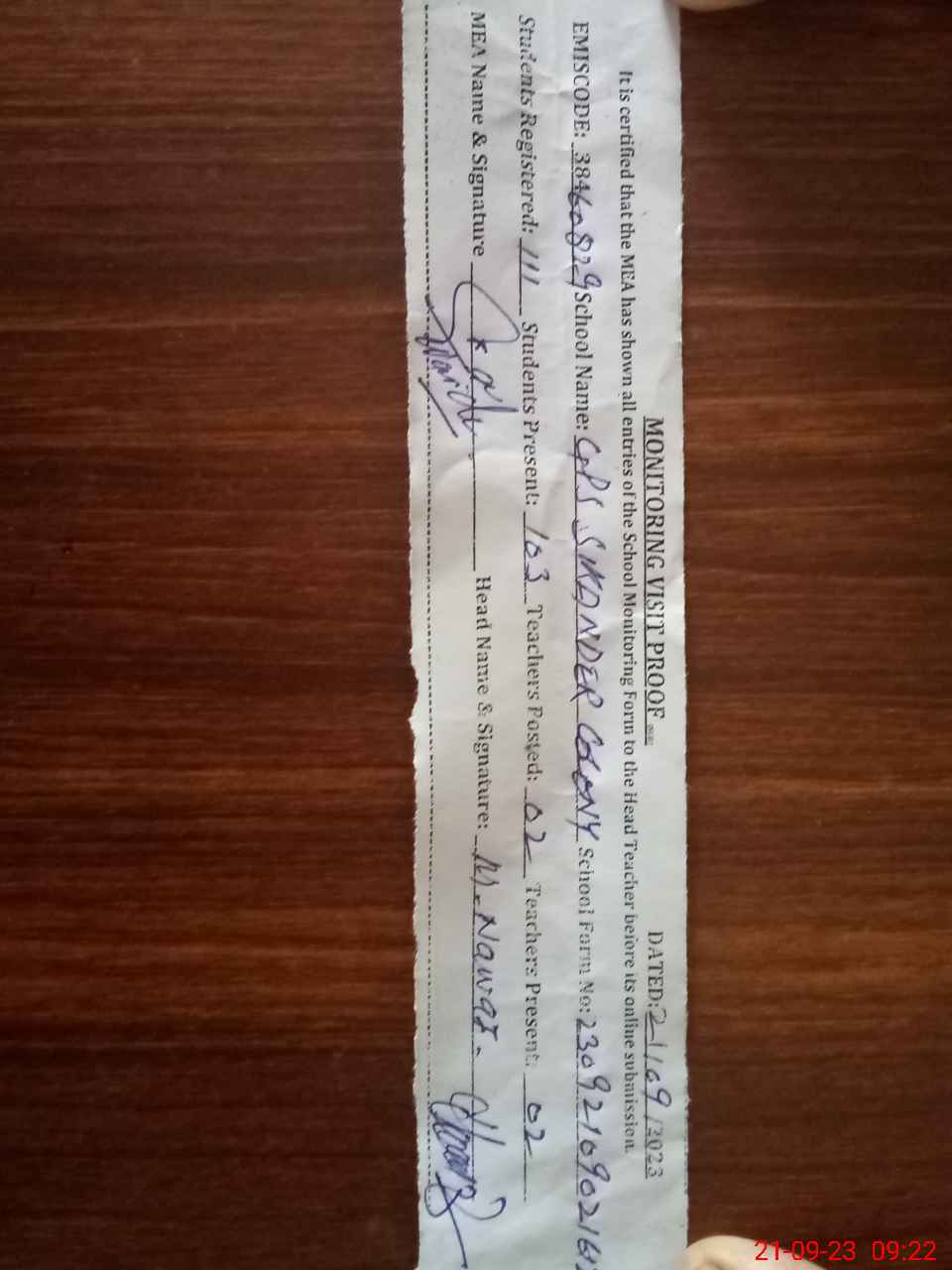 | Remarks (Use Separate Page if Required): GOOD STANDER OF CLEANING MATAINED IN THE SCHOOL | |||||
