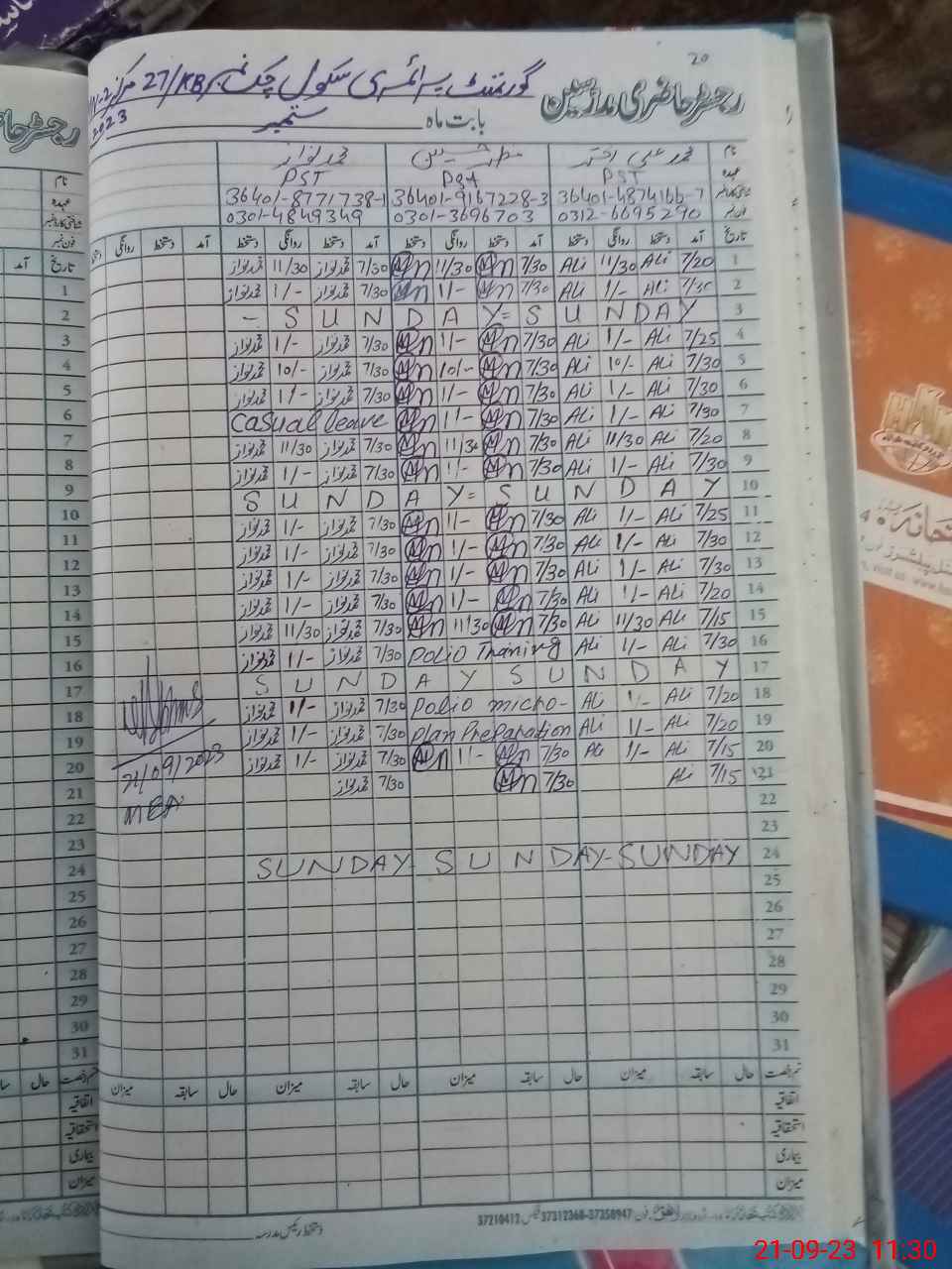 | Name: MU**** AL**** AK**** Designation: (School Headmaster's/Headmistress's) PST Phone/Cell Number: 03**** |