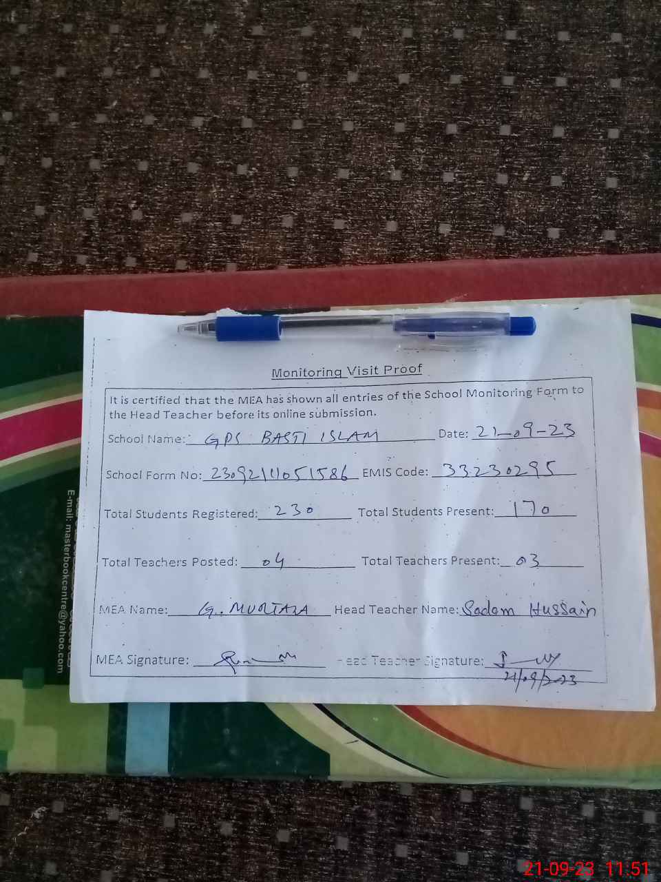 | EMIS Code: 33230295 | Name of School: GPS BASTI ISLAM | |||