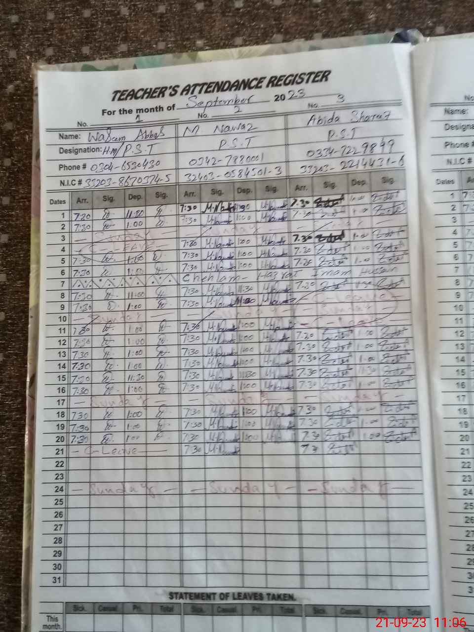 | Name: Wa**** Ab**** Designation: (School Headmaster's/Headmistress's) PST Phone/Cell Number: 03**** |