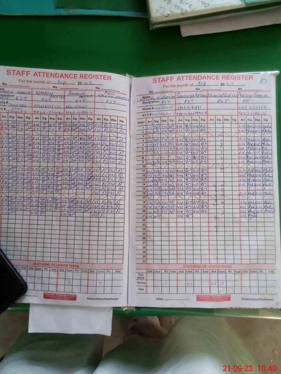 | CNIC | Full Name | Designation | R/C | Absence During Last Calender Month |