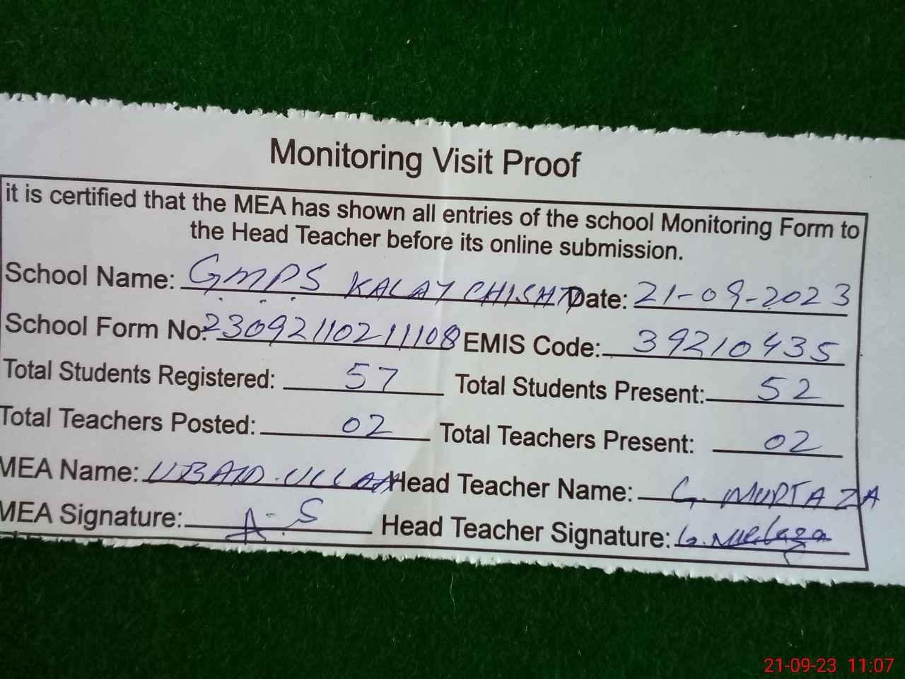 | EMIS Code: 39210435 | Name of School: GMPS KALAY CHISHTI | |||