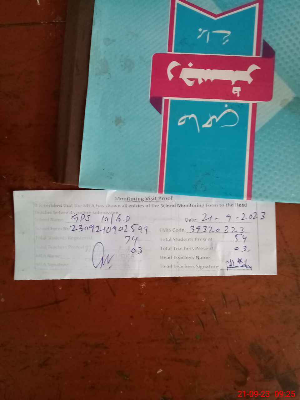 | Attendance Register | Head Teacher | MEA with School | Visit Proof |