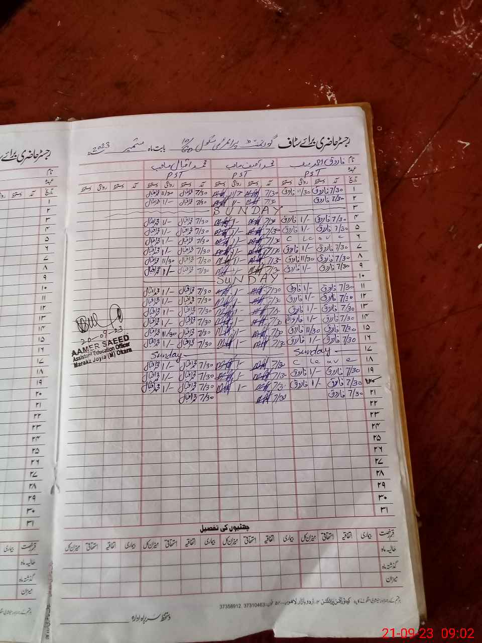 | Name: FA**** AH**** Designation: (School Headmaster's/Headmistress's) PTC/JV Phone/Cell Number: 03**** |