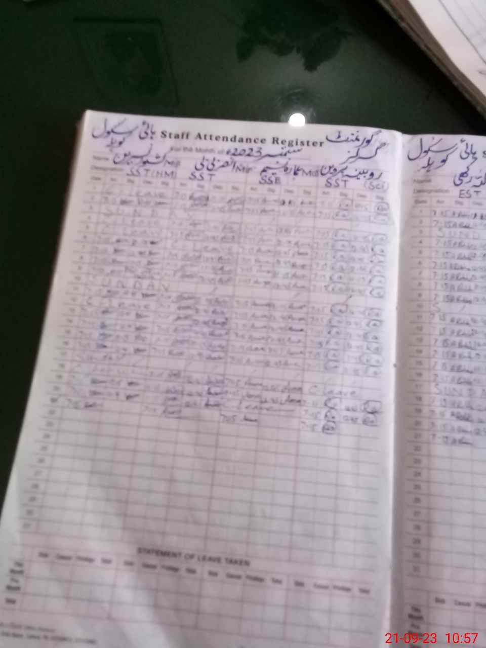 | Leave | Duty | Absent | Maternity | Medical | Ex- Pak |