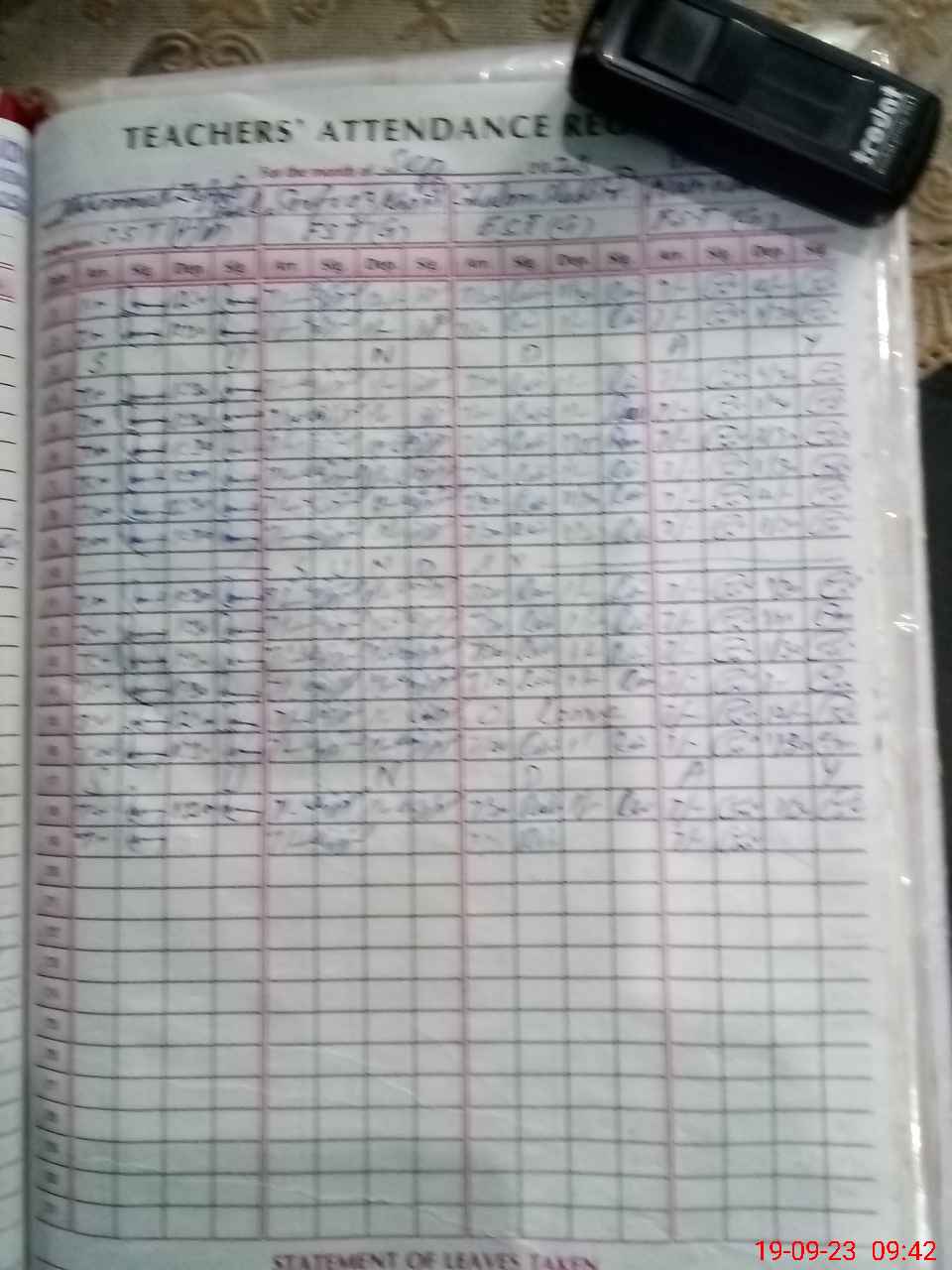 | CNIC | Full Name | Designation | R/C | Absence During Last Calender Month |