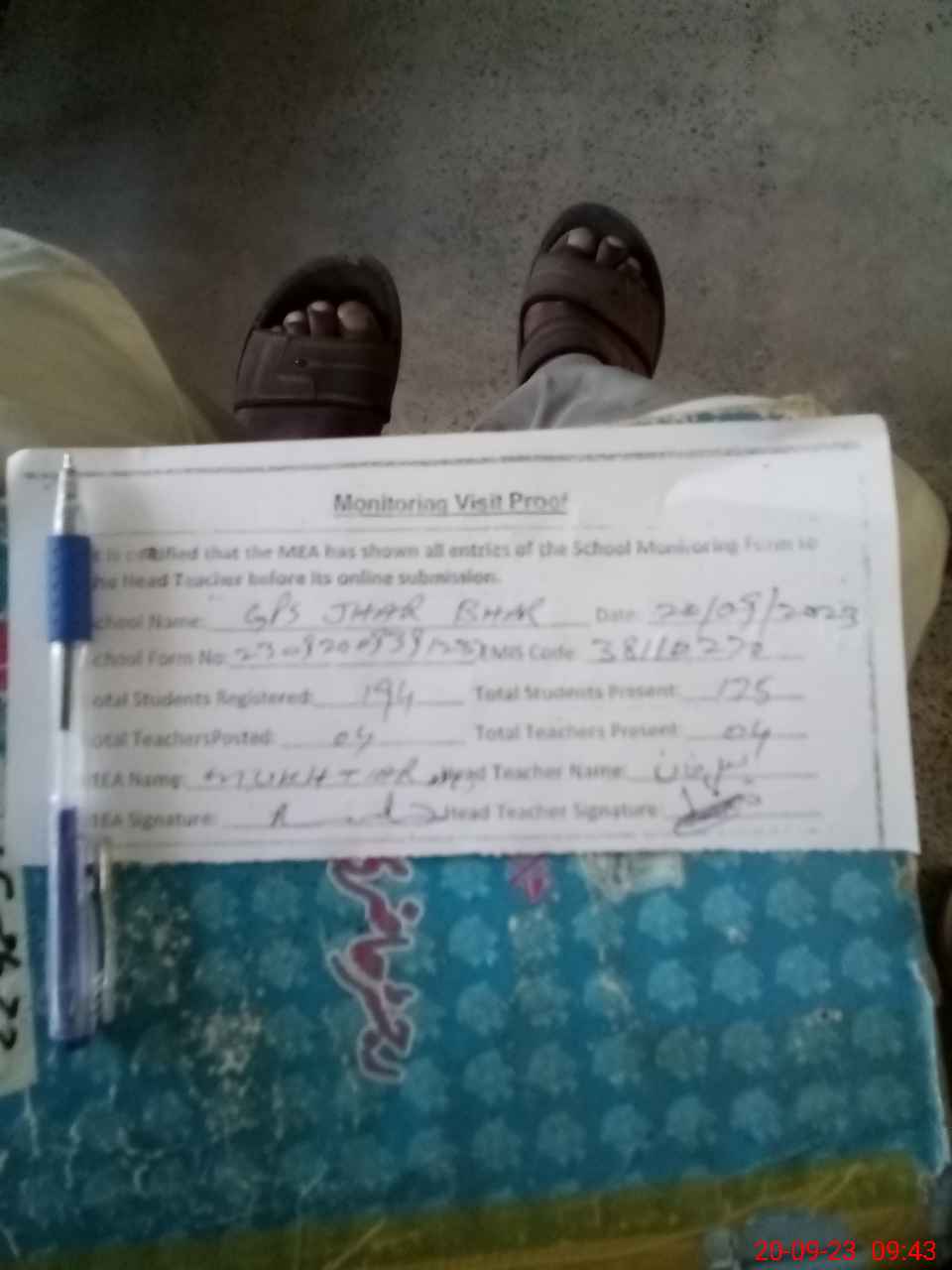 | Attendance Register | Head Teacher | MEA with School | Visit Proof |