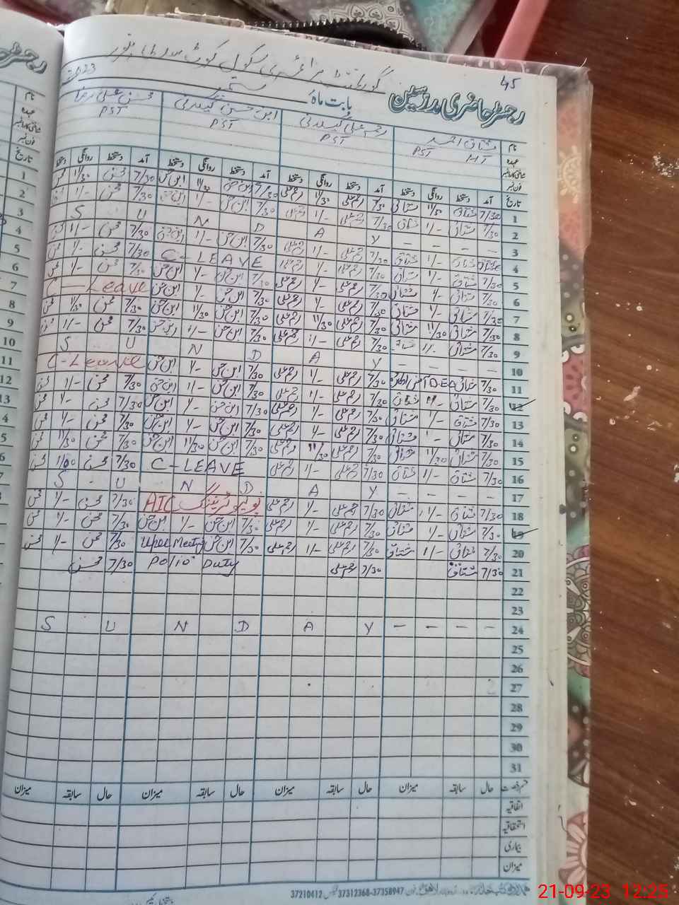 | CNIC | Full Name | Designation | R/C | Absence During Last Calender Month |