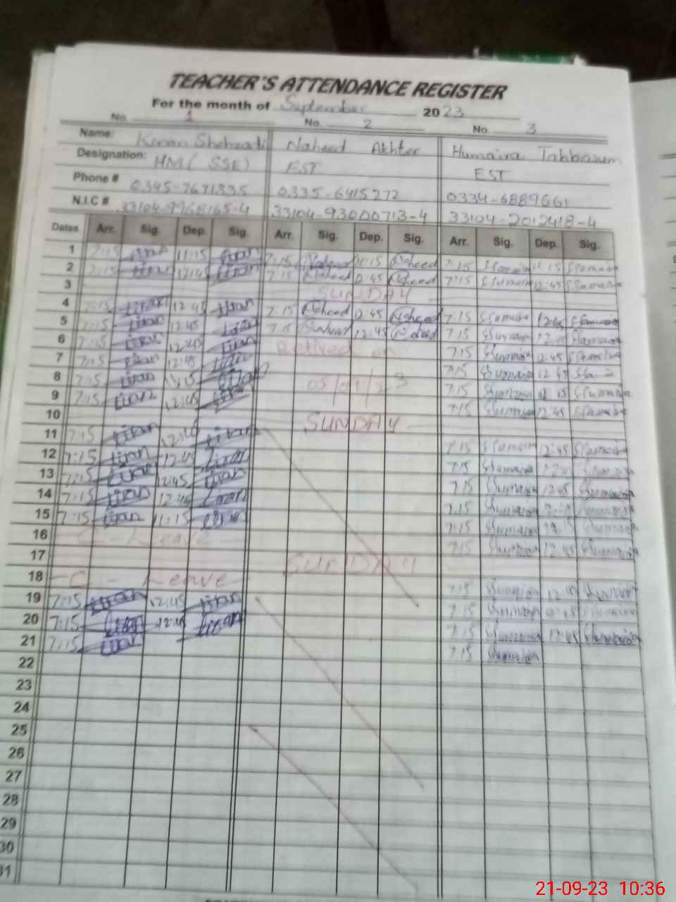 | Name: Za**** Designation: (School Headmaster's/Headmistress's) EST Phone/Cell Number: 03**** |