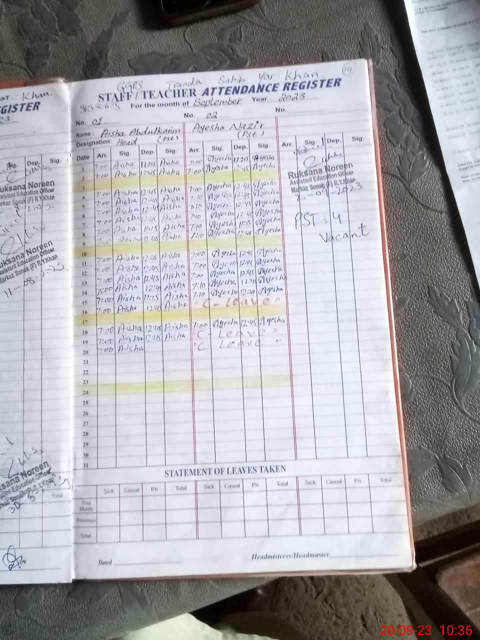 | Name: Ai**** AB**** KA**** Designation: (School Headmaster's/Headmistress's) PST Phone/Cell Number: 03**** |