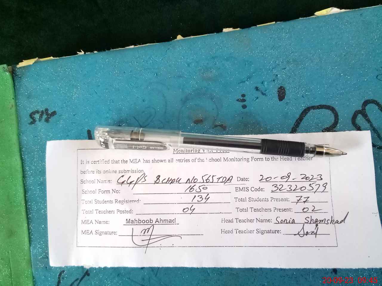 | Attendance Register | Head Teacher | MEA with School | Visit Proof |