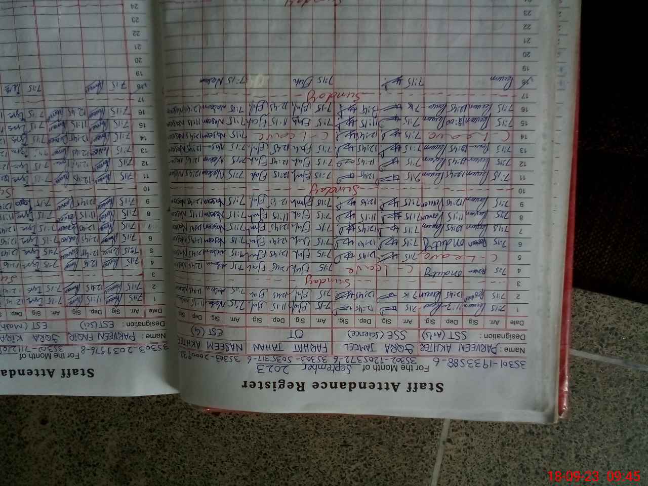 | Monitoring Date: 18-09-2023 | Start Time: 18-09-2023 09:43 AM | End Time: 18-09-2023 10:41 AM | Name of MEA: BA**** HU**** SH**** | |
