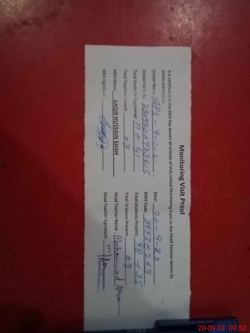 | EMIS Code: 39330263 | Name of School: GPS CHAK 9/I.L | |||