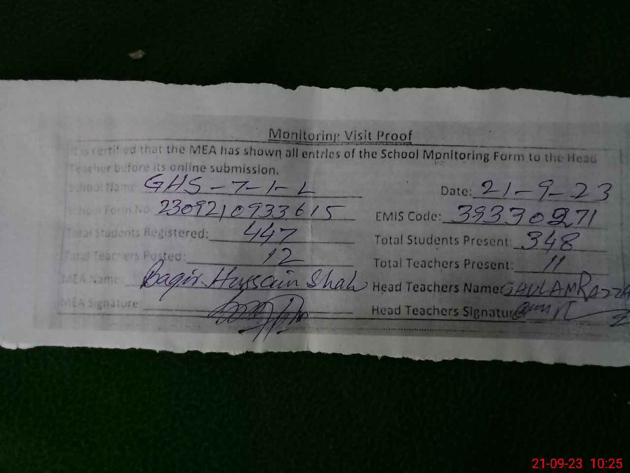 | Name: Gh**** Ra**** Designation: (School Headmaster's/Headmistress's) SST INCHARGE HM Phone/Cell Number: 03**** |