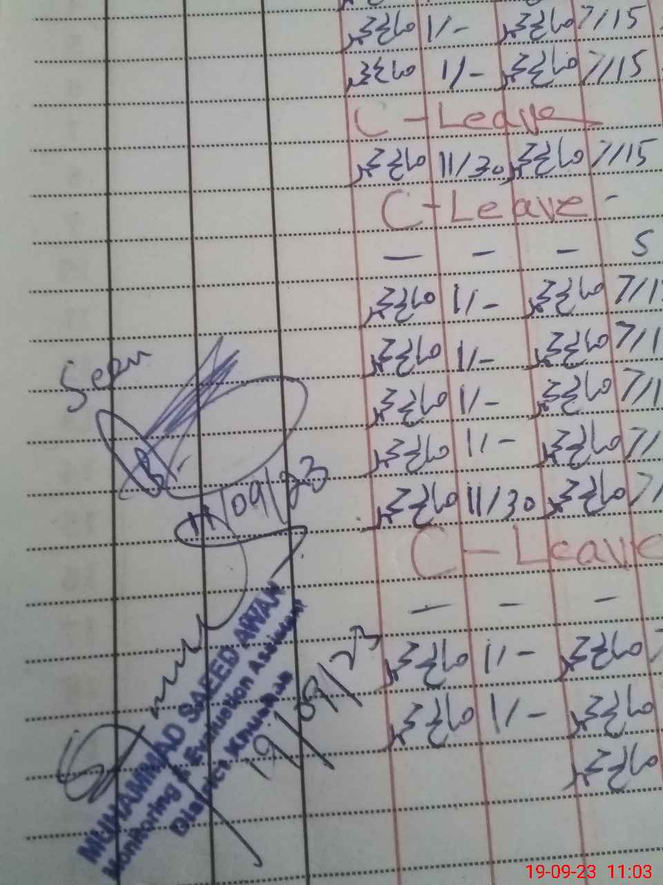 | CNIC | Full Name | Designation | R/C | Absence During Last Calender Month |